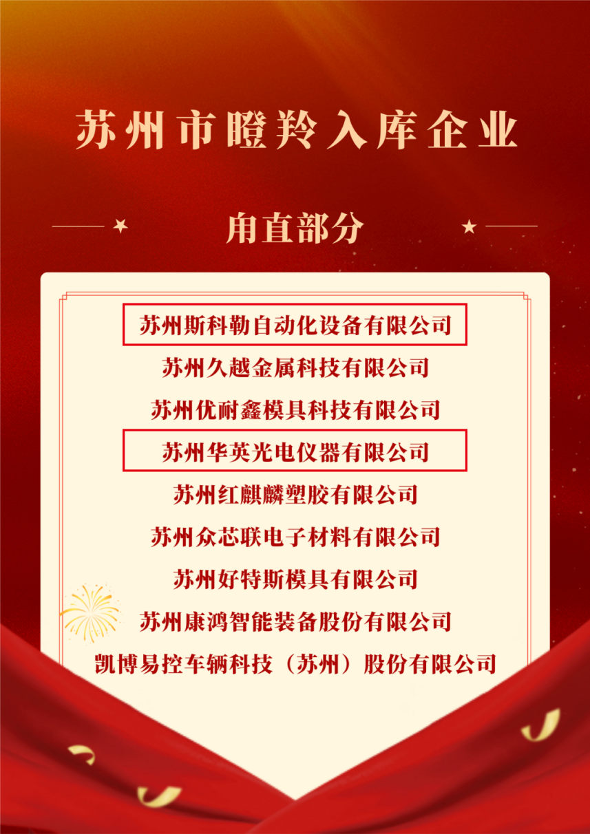 蘇州華英光電儀器有限公司成功入選