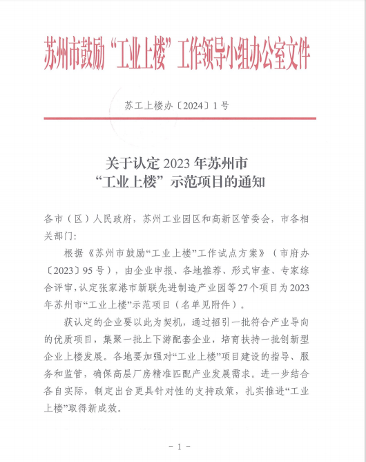 2023年蘇州市“工業上樓”示范項目名單公布