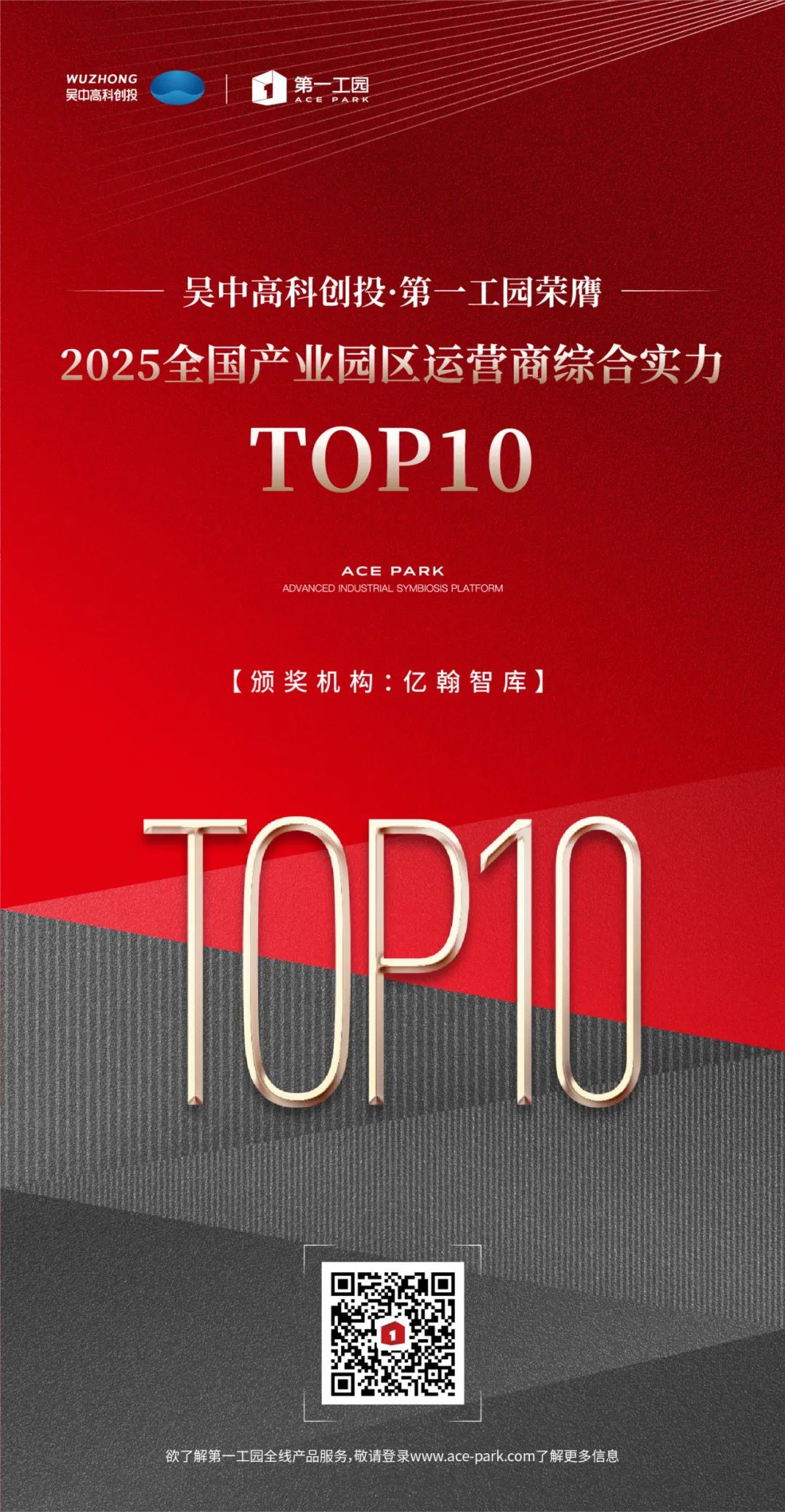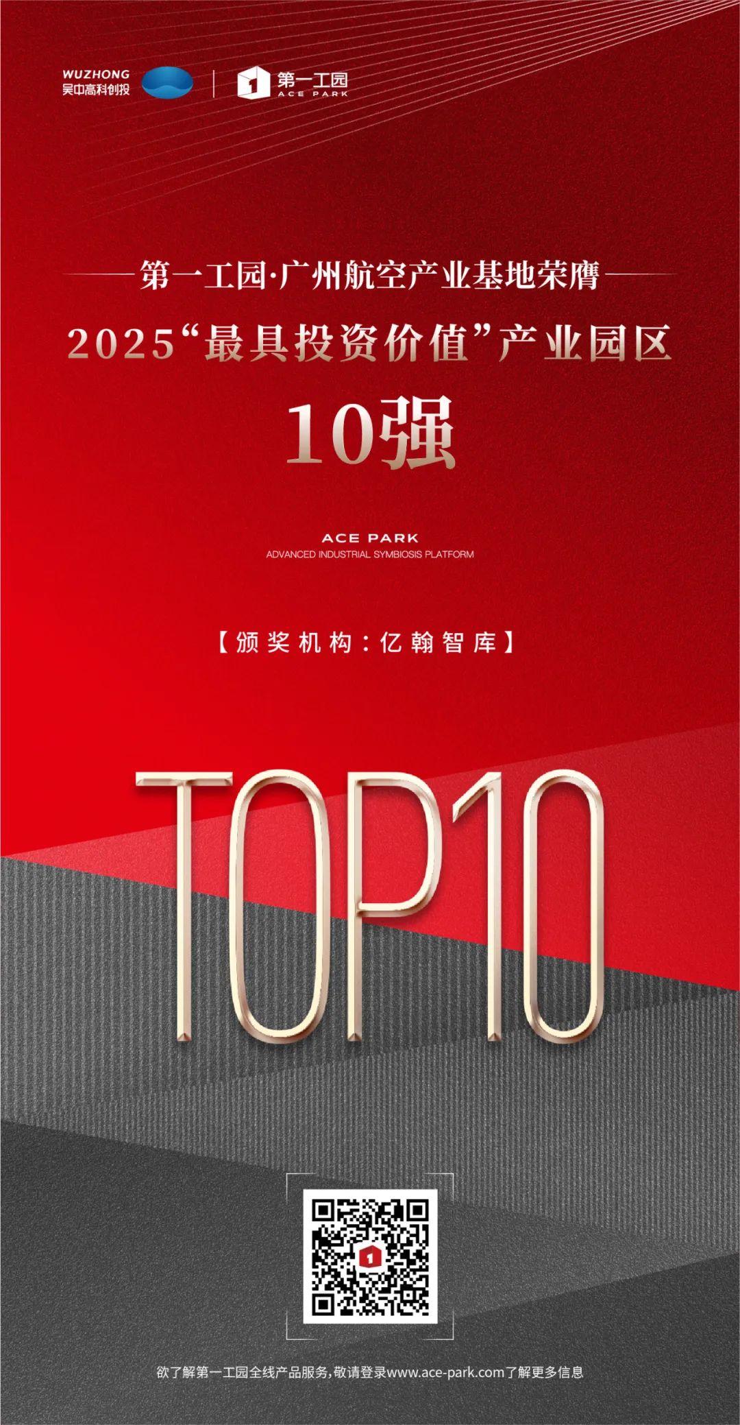 峰會上,吳中高科創(chuàng)投·第一工園榮膺“2025全國產(chǎn)業(yè)園區(qū)運營商綜合實力TOP10”、第一工園·江寧創(chuàng)慧港榮膺“2025區(qū)域城市封面價值產(chǎn)業(yè)園30強(長三角)”、第一工園·廣州航空產(chǎn)業(yè)基地榮膺“2025最具投資價值產(chǎn)業(yè)園區(qū)10強”。